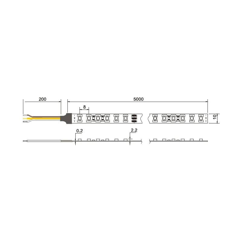 5 meetrisel ribal on küljes umbes 15 cm pikkune ühenduskaabel aga võimalik on ka tellida erineva kaablipikkusega LED ribasid.