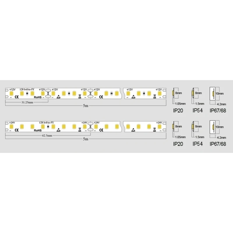 24V DC, 10 W/m, 1500 lm/m, SMD2835,