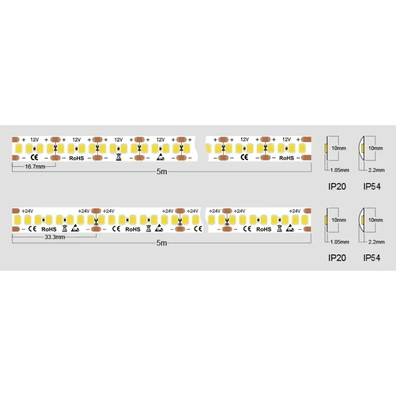 12V DC, 22 W/m, 2741 lm/m, SMD2835,