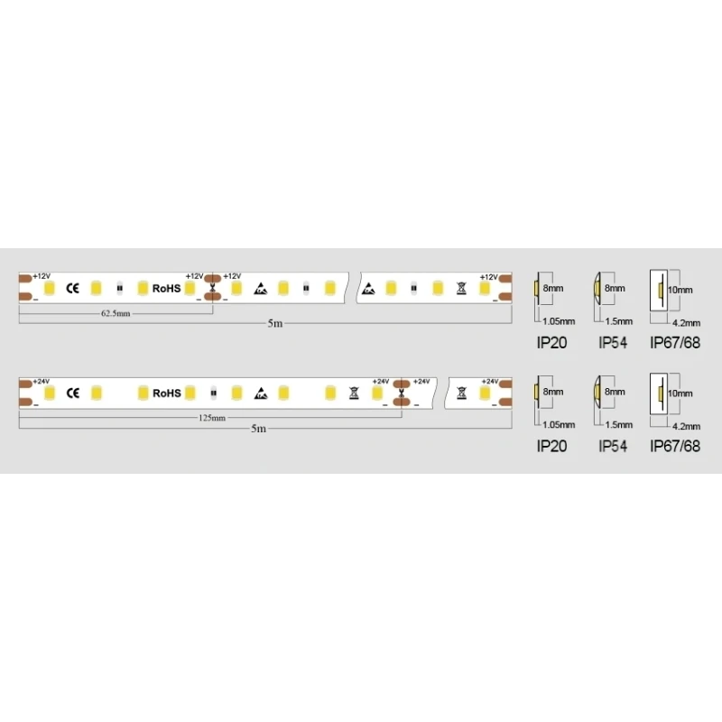 12V DC, 6 W/m, 805 lm/m, SMD2835,