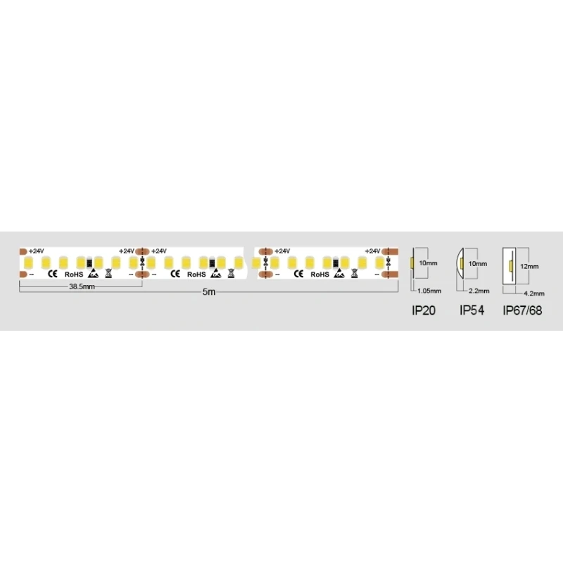 24V DC, 20 W/m, 2300 lm/m, SMD2835,