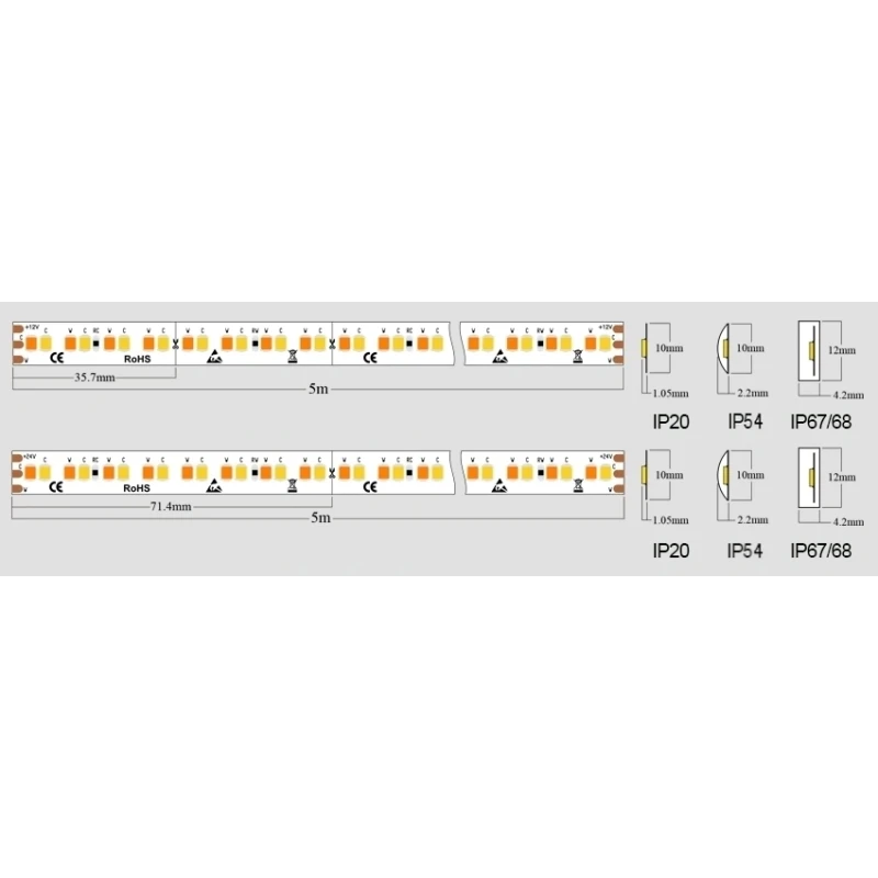12V DC, 24 W/m, 3600 lm/m, SMD2835,