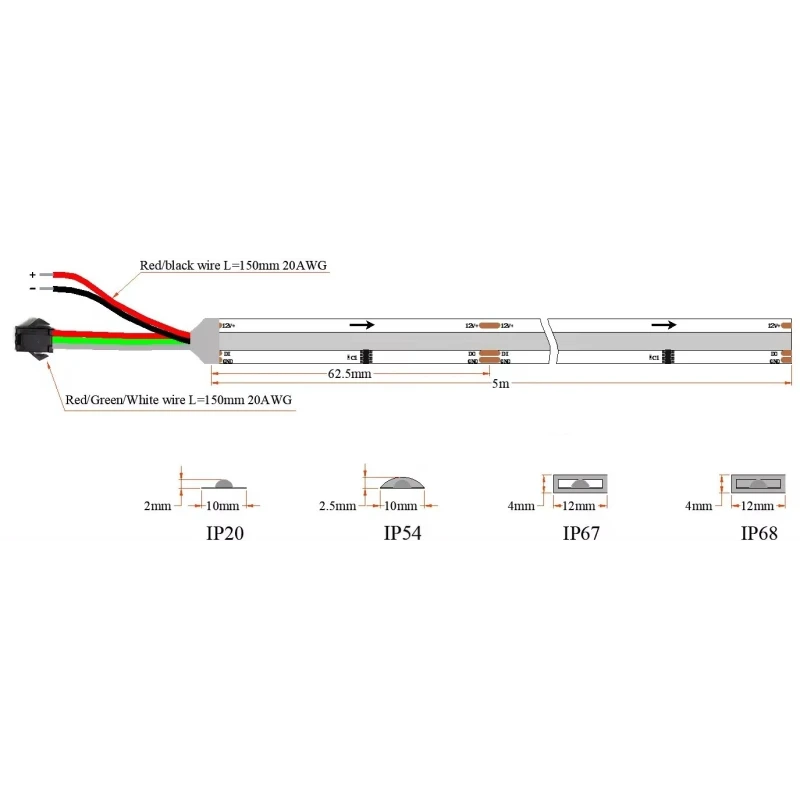 Riba saab väiksemaks lõigata kasutades lõikekohtadena märgitud jooni. Sellisel juhul peab aga rohkema kui IP20 LED riba puhul tagama ka vastava IP klassi omadused. IP67 ja IP68 puhul on selleks olemas eraldi silikoonist otsakatted. Nende mõõdud on vastavalt LED riba laiusele.